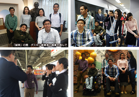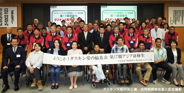 アジア第17期研修生6人は、4月25日から27日までの3日間、ダスキン誠心館やダスキン大阪中央工場、ダスキンコールセンターなどダスキンの事業を学び多くの社員と交流しました。 1日目はダスキン誠心館の礼堂や「誠実」の間、資料館を見学し、ダスキンの祈りの経営について学びました。 2日目は午前中ダスキン大阪中央工場を見学、午後からはダスキン第55期新入社員と交流をはかりながら、障がいについて知っていただくと共にバリアフリーなど、社会環境について考えるプログラムを実施しました。 3日目はダスキンコールセンターを見学し、それぞれの個人研修先へと旅立ちました。