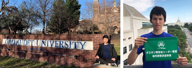 私は、小学校の英語教育早期化に向けて「日本の聴覚障がい児が関心を持てる英語の学習方法とは何か」を学ぶため、世界各地からろう学生が集まるアメリカのギャローデット大学(Gallaudet University)を拠点に、研修を行いました。