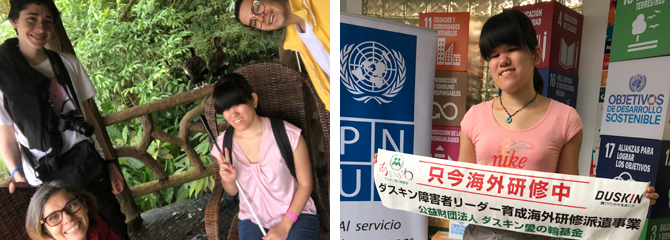 「どうしてコスタリカを選んだの?」 たびたび不思議がられますが、私自身はこの国での研修はもはや必然だったと感じるほど、今後の人生に繋がるような良い影響をたくさん与えられています。 私は、現在、UNDP(国連開発計画)コスタリカオフィスでインターンをしています。元々環境先進国と言われるこの国の取り組みを学びたくて応募した研修であり、政策提言の現場にいられることは、とても貴重な経験です。私自身は、街中で行われる環境系イベントに参加して、その様子をブログで発信したり、ホームページや各種書類などを、視覚障がい者にも使いやすくするための提案をしたりしています。